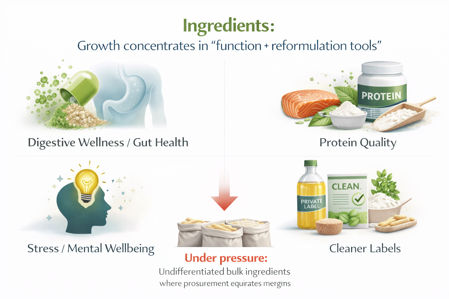 5) Ingredients: growth concentrates in “function + reformulation tools”