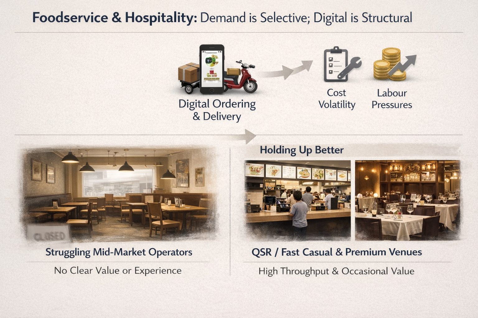 4) Foodservice & hospitality: demand is selective; digital is structural